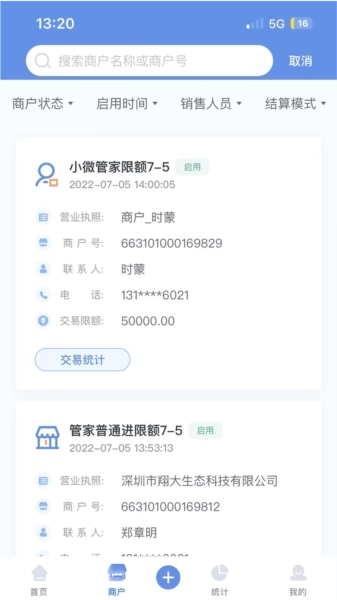 在这里也能绑定对应的商户,之后就能便捷地查询各类商户的信息;