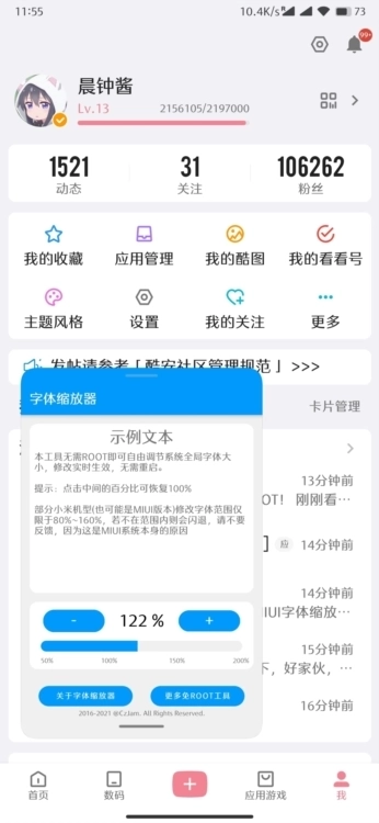 更新到最新版本的字体缩放器(例如v2.1),可解决MIUI系统中部分闪退的情况。