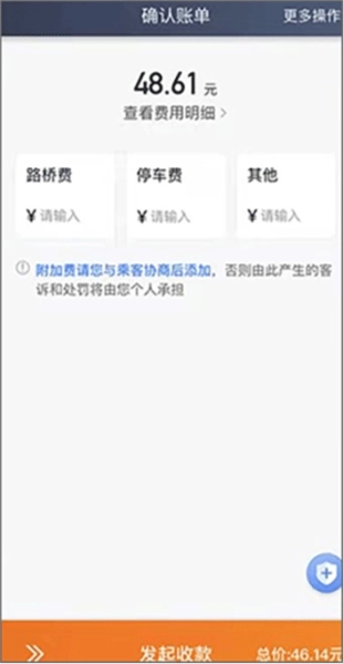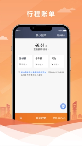 4、在顺利把乘客送到目的地之后,就可以确认账单并发起收款了。