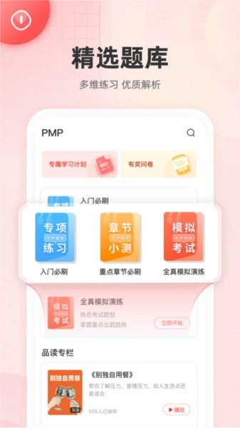 更关键的是,PM圈子的分章练习功能让学习更具针对性,用户能够依照考试大纲的章节要点开展精准练习。这种系统化的刷题模式,搭配模拟练习题库与错题深度解析,帮助学员更透彻地掌握学习内容,从容避开错误误区。