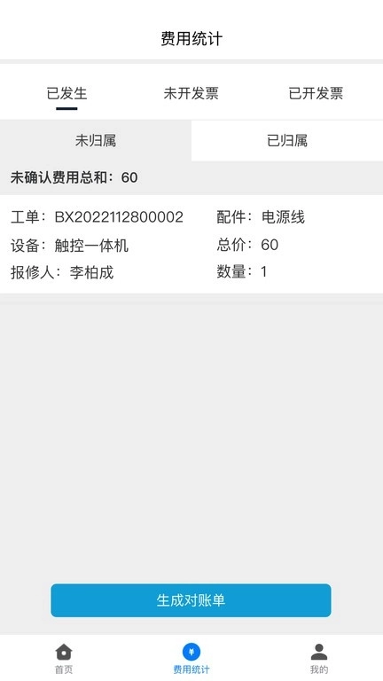 针对用户的维修费用展开统计,便于后续查账对账工作的开展