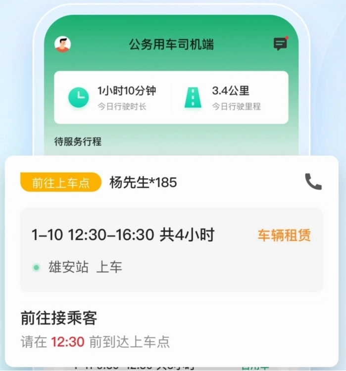 雄安行司机端是雄安新区专为公务用车司机打造的数字化管理平台,其目的是借助信息化手段来规范公务用车的调度流程,提高车辆的使用效率,从而助力雄安新区构建起绿色、智能且高效的现代化交通体系。作为雄安新区智慧城市建设里的关键一环,该平台以“服务公务出行、强化过程监管、推动绿色发展”作为核心目标,为司机提供覆盖全流程、具备可视化功能的订单管理工具,同时还能与调度平台实现无缝对接,达成订单接收、改派、执行以及反馈的一体化操作。