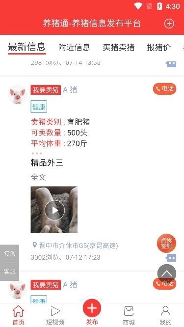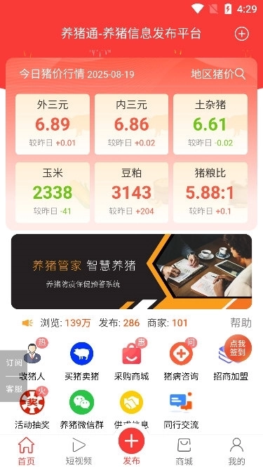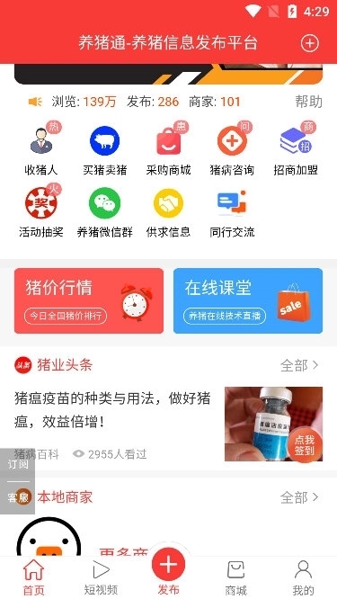 软件具备在线查询猪价、咨询猪病问题、发布生猪售卖信息以及猪场招聘信息等实用功能。