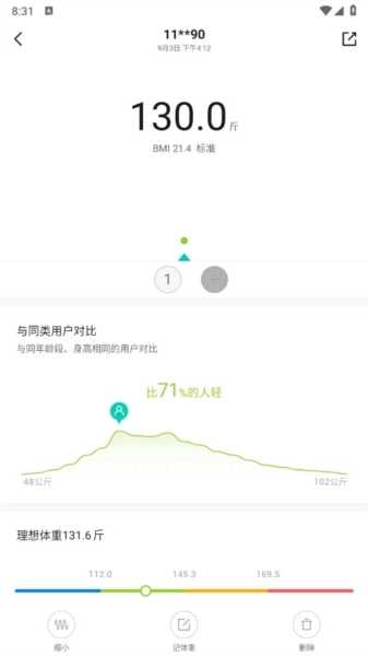 当然了点击体重也可以查看详细对比数据。