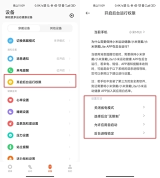 配对后,你可以在App里依次进入“设备”板块,找到“开启后台运行权限”页面,然后按照页面提示完成相关设置。