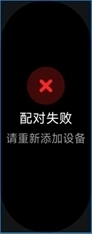 当进行绑定操作时,若手机处于关机状态或发生重启,手环会显示“配对失败”的界面提示,此时需要等手机开机后再次执行绑定流程。
