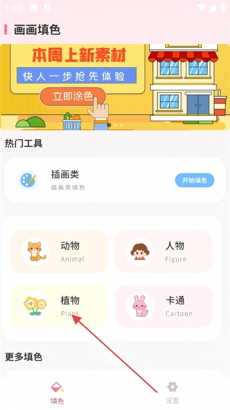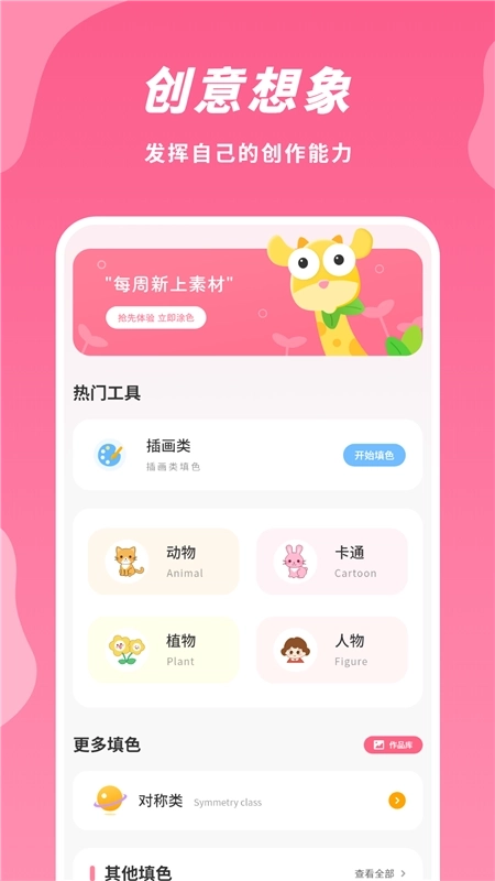 设有“开始填色”按钮,在此分类下,用户可以接触到风格多样的插画作品进行填色创作,无论是唯美风、简约风还是艺术风插画,都能满足用户对绘画艺术的追求,释放创意灵感。