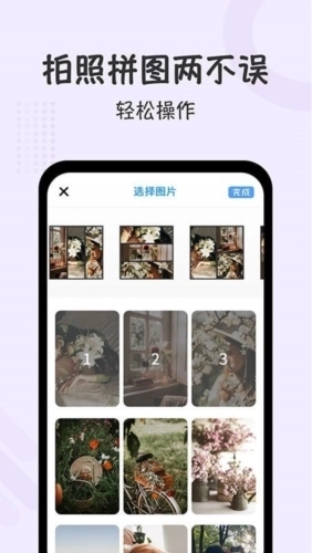 【创意拼图】采用灵活多变的拼贴形式,搭配多样的拼图模板,支持选取多张图片进行自由拼接组合。