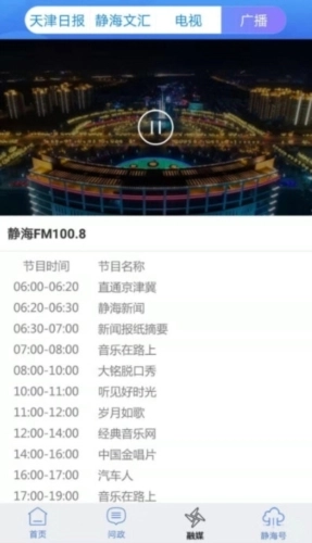 2、融媒,包含《天津日报》、《静海文汇》、“电视”以及“广播”等子栏目;