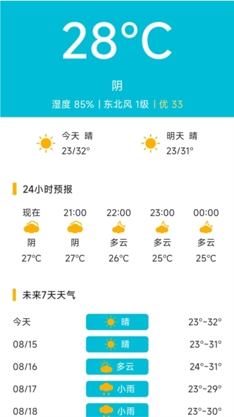 天气预报:实时更新本地及未来七天的天气状况,方便大家规划出行安排。