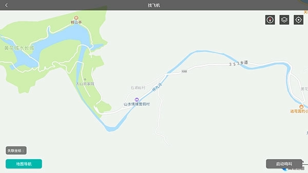 3、最后在地图界面找到无人机的【失联坐标】,可以选择导航功能前往,或者启动鸣叫功能,以此来找回失联的无人机。
