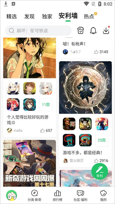 好游好爆还是一个汇聚了各领域大神的社区,这里会持续更新大量热门攻略与玩法,能帮助玩家尤其是新手更顺利地融入自己喜爱的游戏。应用内的安利墙是玩家发现全网热门游戏的独特渠道,它能让玩家找到评论最火爆的游戏,还支持玩家上传自己的评价,与千万玩家交流分享经验。此外,平台还推出了多种激励机制来助力玩家共同维护社区,其中就包括提供海量福利,有需求的玩家可以在平台内领取使用。