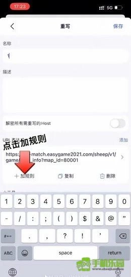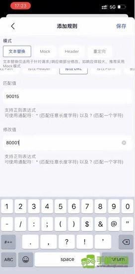 3、在获取到的抓包流程里,找到后缀为90016的地址,右滑将其添加到重写规则中,再修改对应的url