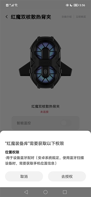 3、开启定位与蓝牙功能,风扇通电可直接使用手机充电器直插供电,随后在装备库中进行连接操作。