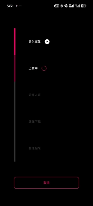 4、等待导入媒体上传完成