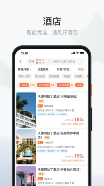 沃德阿拉丁是备受用户青睐的领先酒店预订平台,凭借丰富的房型选择与便捷的服务体验赢得广泛认可。作为全智能化应用,它不仅简化了入住流程,更通过自主服务模式让用户的旅行住宿体验轻松又愉悦。现在就加入我们,开启沃德阿拉丁为您打造的无忧旅程吧! 该平台始终专注于提供安全、洁净的住宿环境,依托先进技术实现快速入住与退房:身份证轻轻一扫即可领取房卡,退房时插入房卡便完成流程,全程无需押金、免查房,真正做到省时省心。智能自助入住机更是让选房、续房、支付等操作尽在掌控,无接触服务模式进一步升级了安全保障,让每一次住宿都安心无忧。