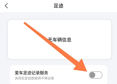 2、进入足迹页面,将爱车足迹记录服务的按钮开启;