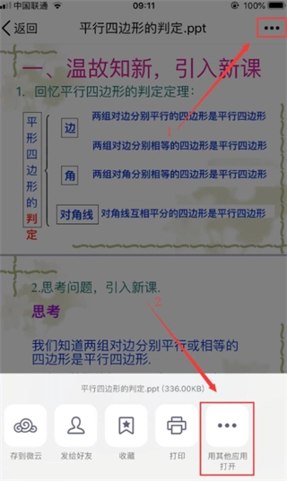 2、点击右上角的更多图标“...”,选择“用其他应用打开”