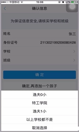 4、选择孩子正确的学校与班级,确定后绑定成功