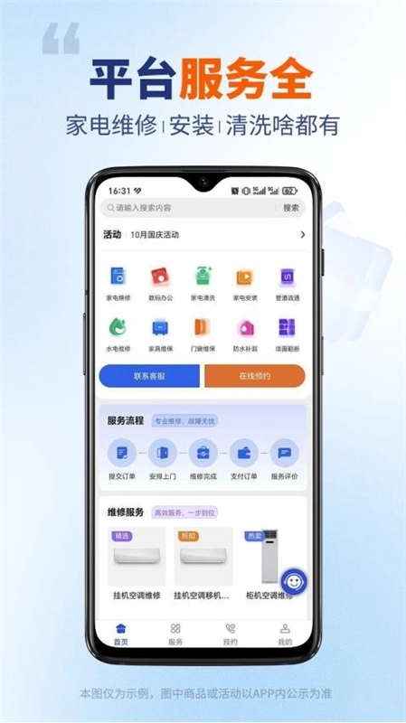 用户可随时在线预约服务,能针对所需的各项服务提前预约并下单。