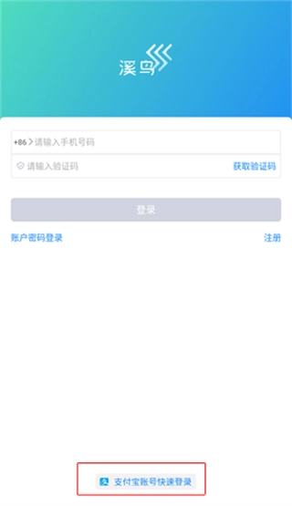 1、用户打开软件后,点击底部的支付宝账号快速登录按钮;