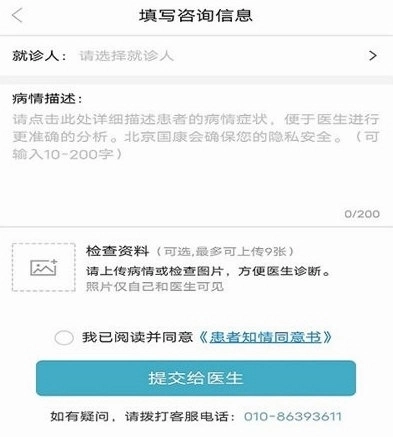 提交病情描述和检查报告。