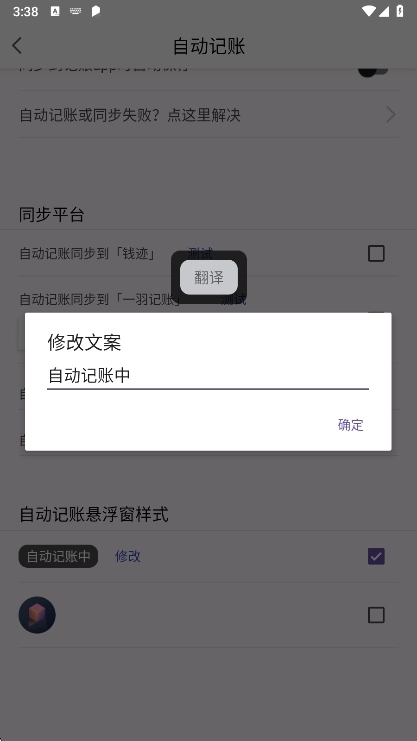 根据提示启用翻译功能,可能需要授予一些权限,比如显示在其他应用上层的权限。