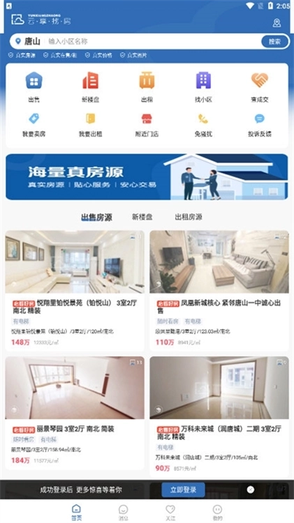云享找房是一个专注于二手房、新房交易及租赁业务的专业房产服务平台。平台整合了大量真实有效的房源信息,业务范围覆盖国内多个城市,不管是繁华都市的核心区域,还是静谧郊区的宜居住宅,用户都能在平台上找到符合心意的房源。云享找房致力于消除信息不对称问题,为用户提供全面、精准且及时的房产市场行情解读,助力用户在找房过程中充分了解市场趋势,从而做出更合理的决策。