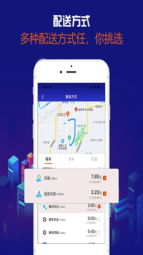 2、在飞鸽同城中,用户能够自主挑选配送方式,用于完成下单后的配送环节。