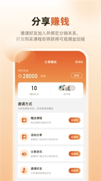 把课程分享给好友,用户就能轻松获得丰厚的佣金回报。