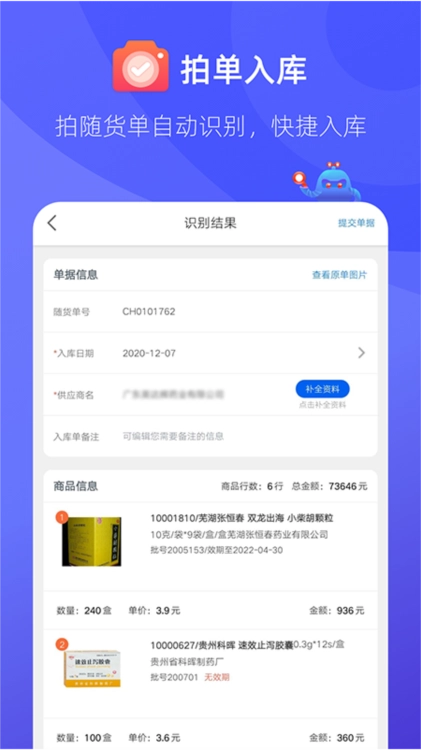 拍随货单自动识别,快捷入库