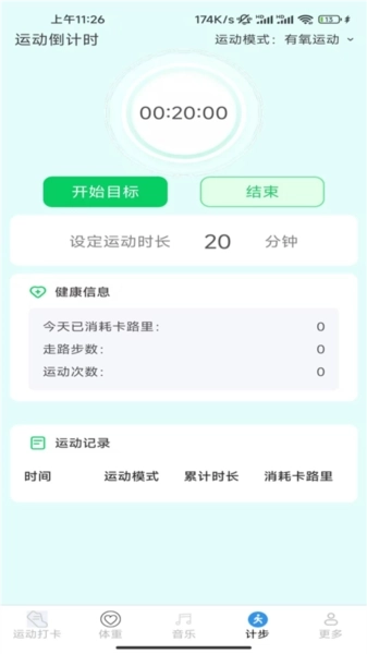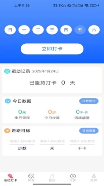 3、新增运动打卡功能,用户可记录每日运动情况并设定运动目标,以此激励自己坚持完成每日运动量。
