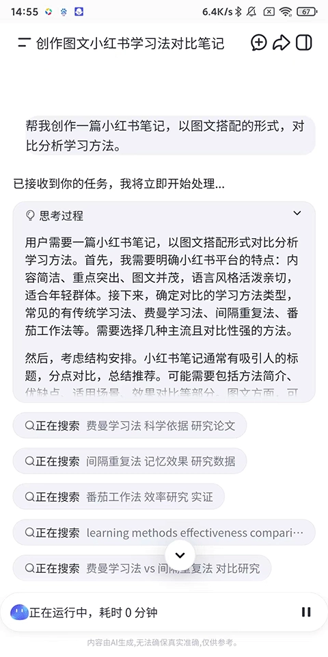 1、深度研究:自动检索多渠道信息,梳理文献资料、进行归纳总结,最终输出研究成果。