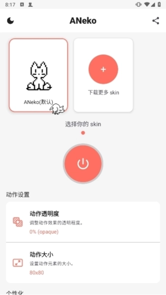 ANeko桌宠是一款像素风格的桌面宠物应用,它体型轻巧,默认情况下会为你提供一只ANeko桌宠。这只宠物的设计灵感来源于早期Windows系统中那只跟随鼠标移动的小猫。你可以通过触摸、拖动等方式与它互动,小猫会根据你的操作做出不同反应,比如跟随鼠标、打盹、跑动等。该应用支持调节透明度、大小、位置等参数,兼容主流Android系统,非常适合喜欢个性化桌面或追求轻娱乐体验的用户。