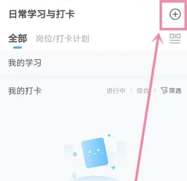 2、进入打卡页面,点击右上角【+】
