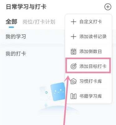 3、在弹出菜单,点击【添加目标打卡】
