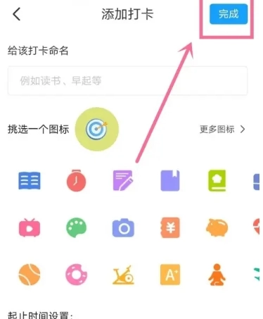 4、进入添加打卡页面,编辑目标打卡信息,点击【完成】按钮即可