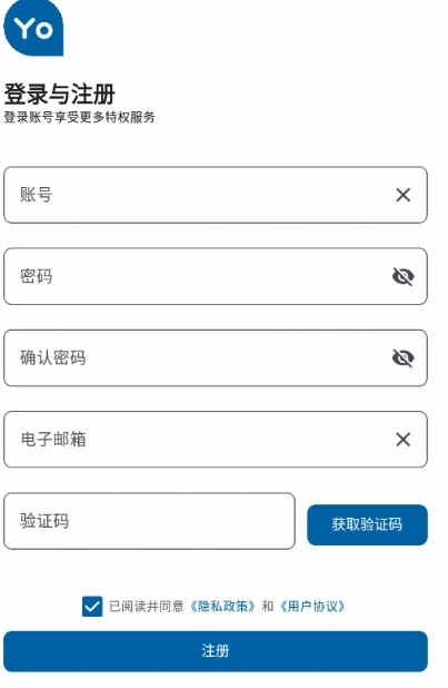 4、设置账号密码和电子邮箱,获取并填写验证码以完成注册
