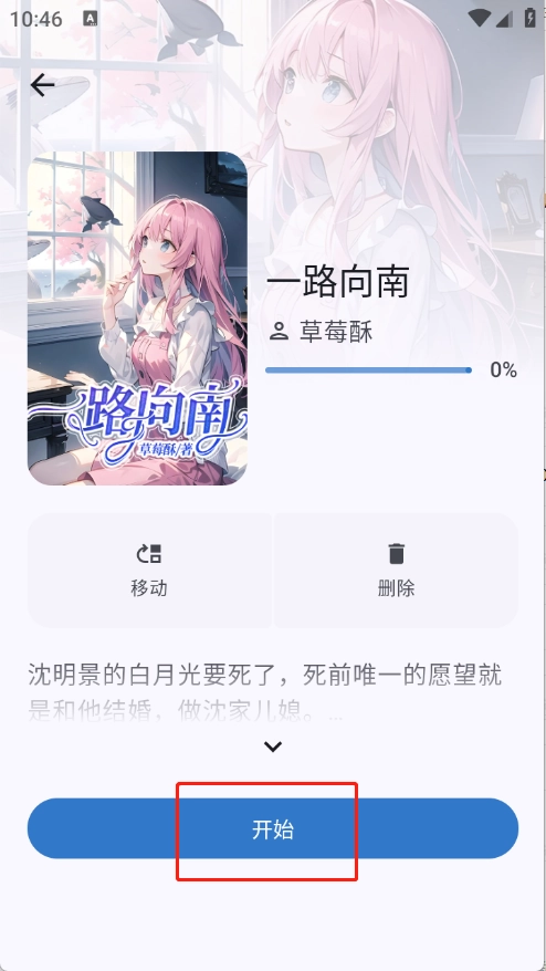 3.点开喜欢的小说,点击“开始”即可阅读