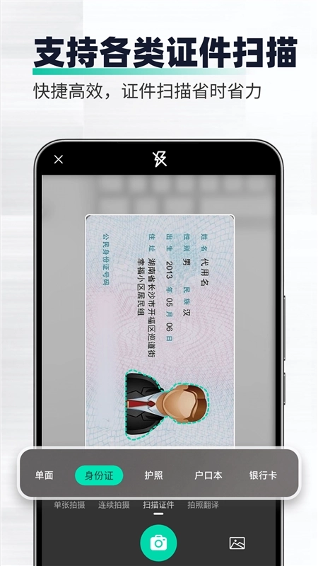 扫描证件:智能识别各类证件信息,轻松转换为电子版,便于存储与分享。