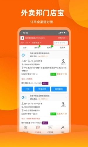 外卖邦门店宝应用能自动接收新的外卖订单,并在订单列表中展示。商家可实时查看订单状态(像待处理、已处理、已完成等),还能对订单进行处理(比如确认接单、打印订单、安排配送等)。
