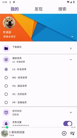 2、高音质选项:提供多种音质选择,满足您对音乐品质的追求,让您体验无损音质带来的纯粹感动。