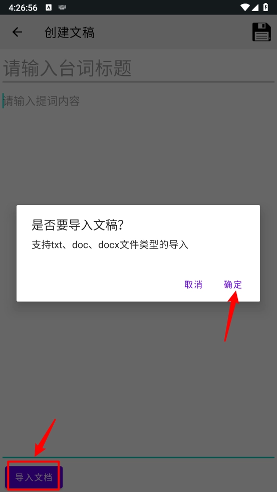 3、快捷文案输入:支持一键导入doc/docx/txt格式文档,还能通过拍照扫描、语音输入等方式快速录入内容,助力拍摄效率大幅提升。