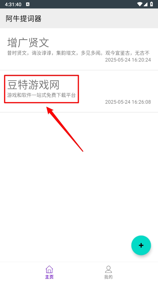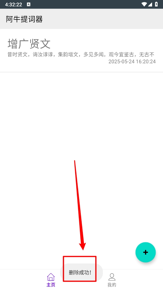 1、打开阿牛提词器,在主页选择所需删除的文稿。
