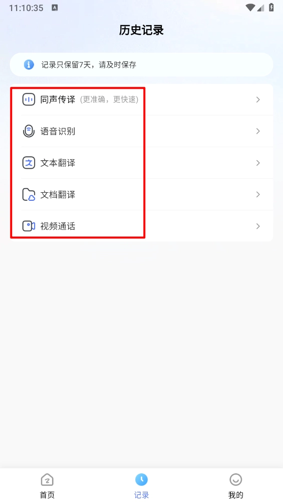 5、返回并切换到“记录”板块,就能查看对应的翻译记录,需要留意的是,记录仅保留7天时间。