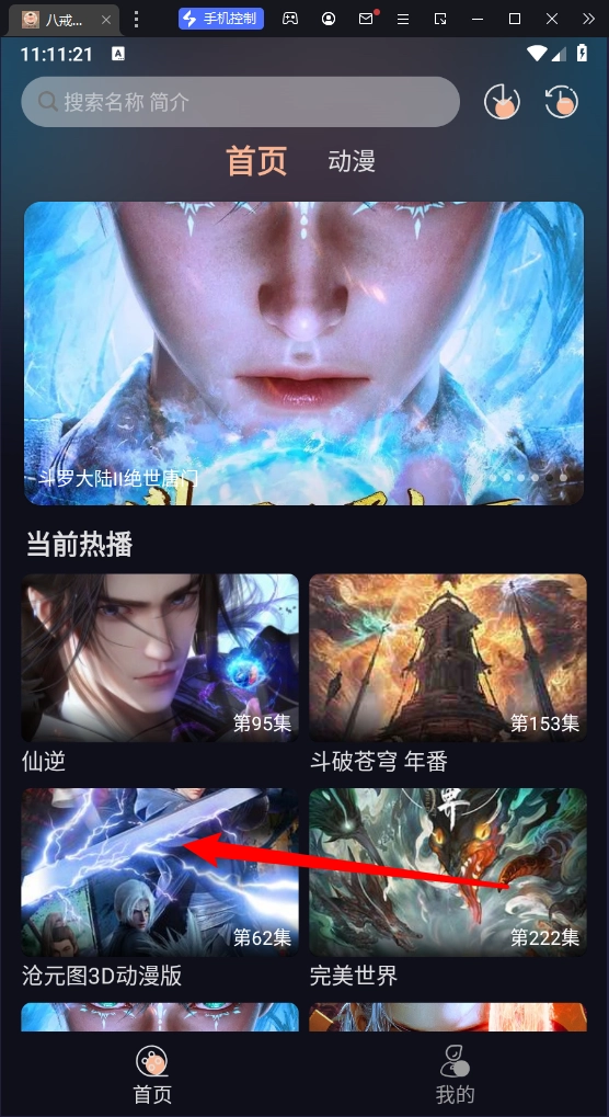 1、打开八戒动漫,在首页点击顶部的搜索框来搜索番剧。