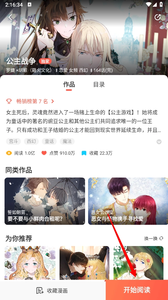 4、接着打开需要的漫画进入,在漫画详情页面点击“开始阅读”按钮。