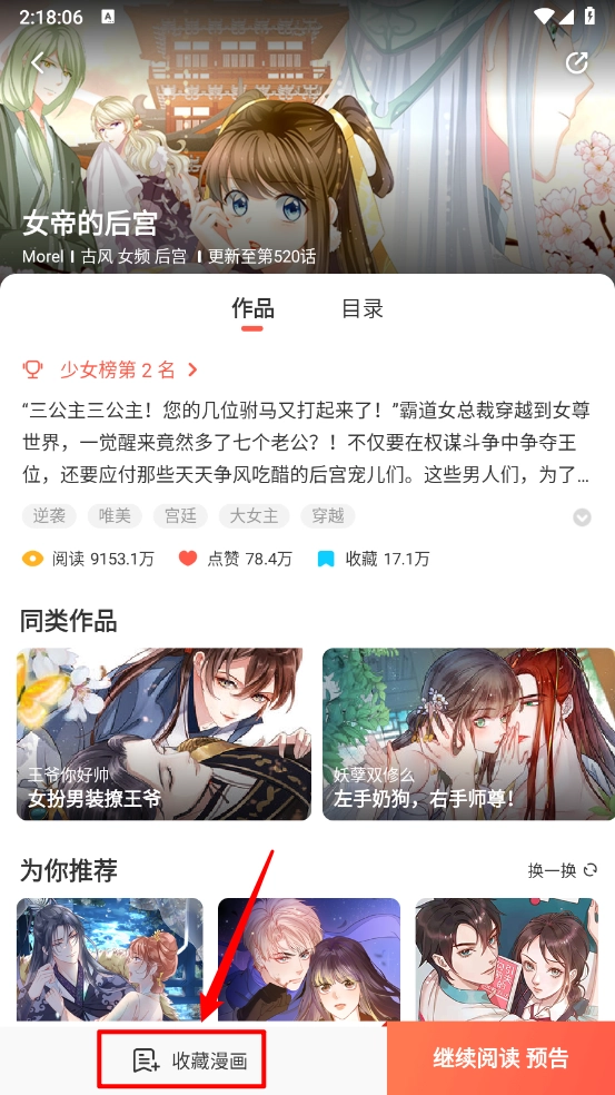 2、然后进入漫画详情页点击"收藏漫画"。