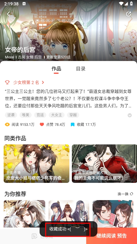 3、如图所示,已成功收藏漫画。