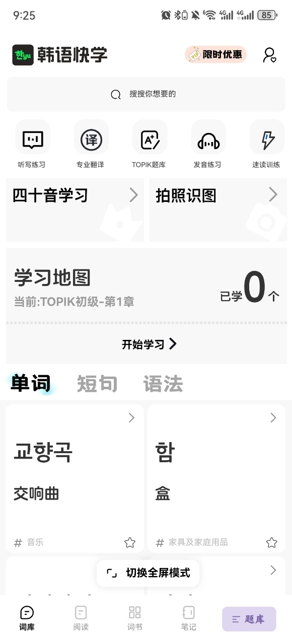 韩语快学,这款专业又好用的一站式韩语学习神器,从最基础的四十音、高级语法到TOPIK备考,都提供系统教学。发音练习、单词记忆、情景对话也一应俱全,搭配智能纠错功能,助你说出地道韩语,全方位满足韩语学习需求。